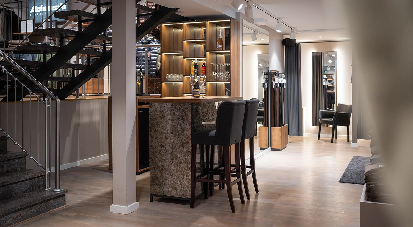 Anzüge, Sakkos, Mäntel und Hochzeitsmode. Wir stellen passende Kombinationen zusammen, prüfen Größe und Länge und ergänzen auf Wunsch Schuhe und Accessoires.