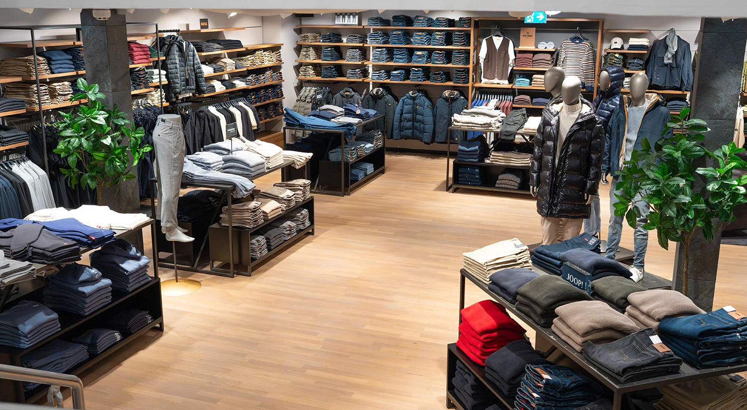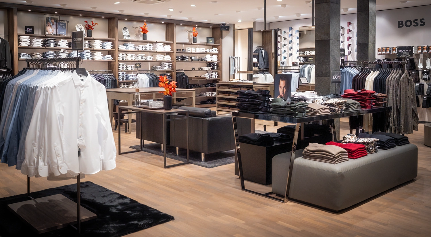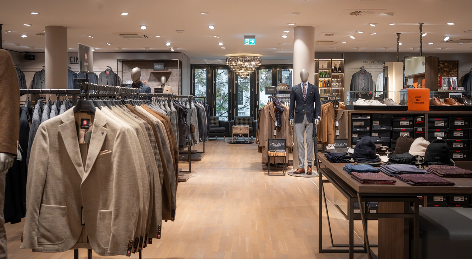 Strick, Poloshirts und hochwertige Basics für den Alltag. Übersichtlich sortiert, schnell anprobiert, gut kombinierbar. Hier finden Sie auch die Kasse – als Anlaufpunkt für alle Fragen und Anliegen.