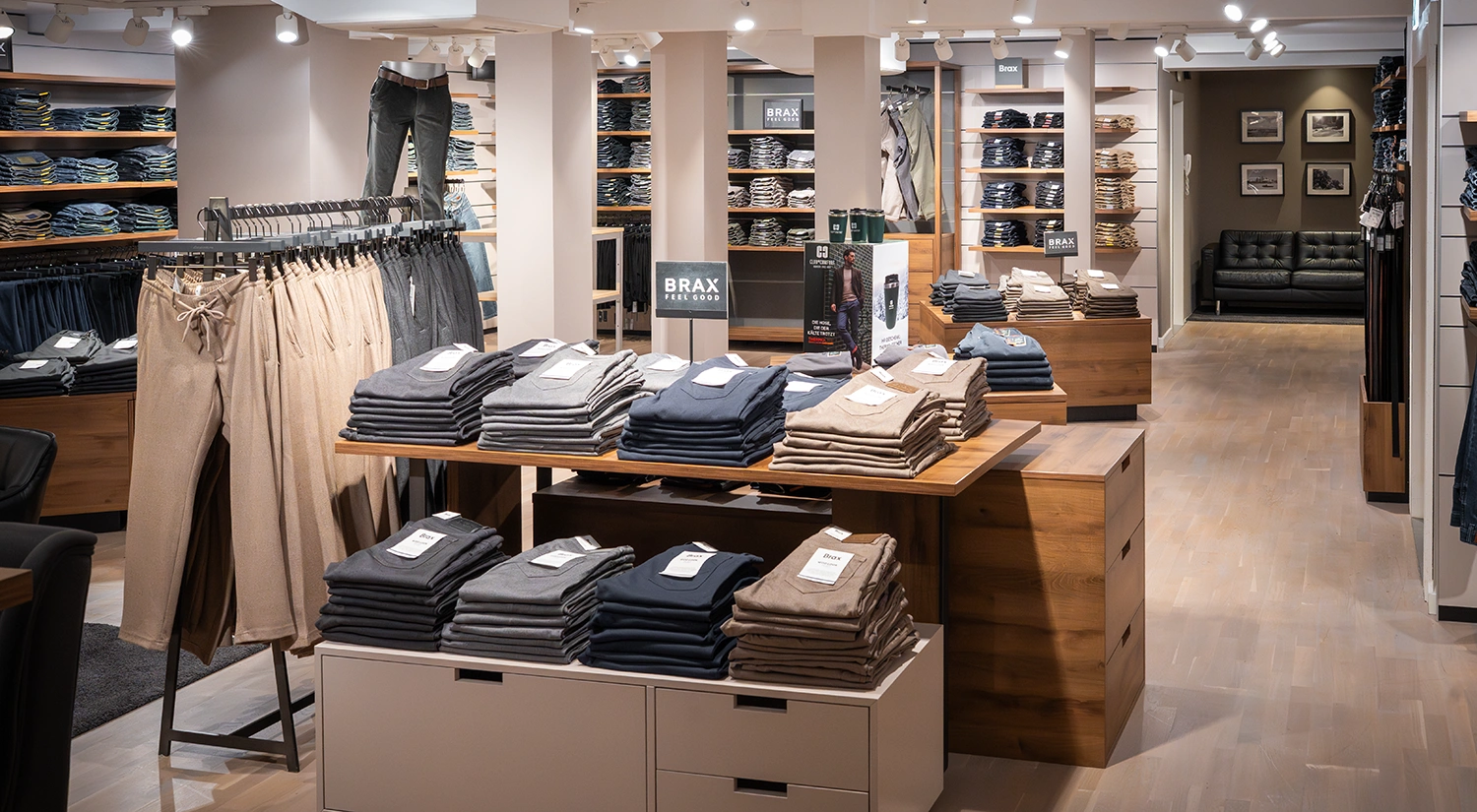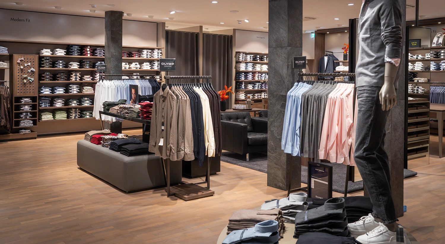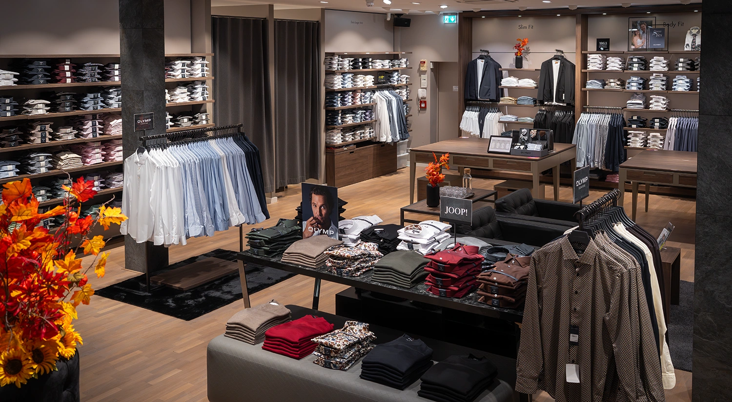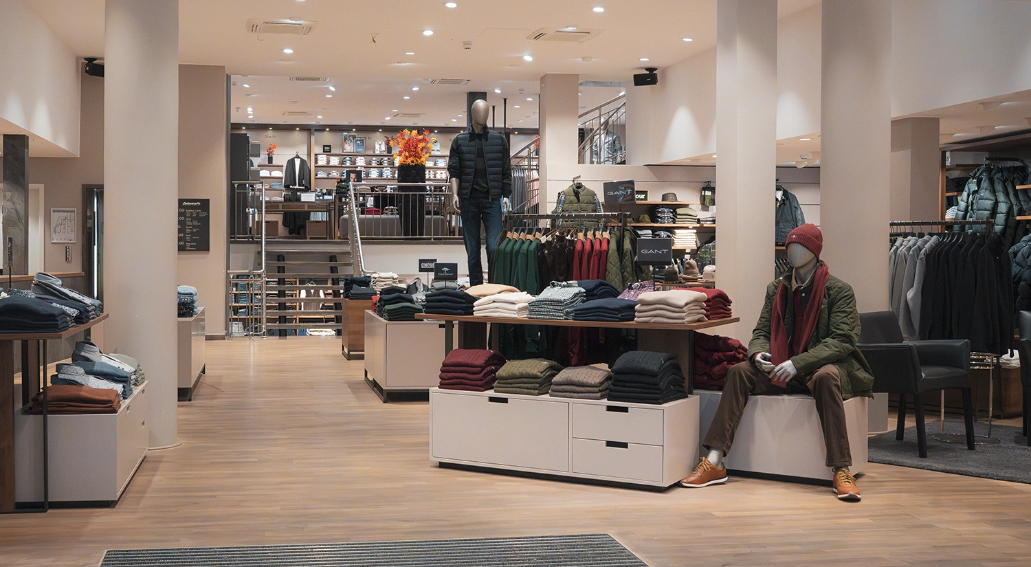 Strick, Poloshirts und hochwertige Basics für den Alltag. Übersichtlich sortiert, schnell anprobiert, gut kombinierbar. Hier finden Sie auch die Kasse – als Anlaufpunkt für alle Fragen und Anliegen.